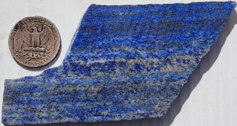 lapis slab weighs about 2.42 Oz and measures about 3" x 2" x .236" thick. Pictures taken with slab damp. $12.00
