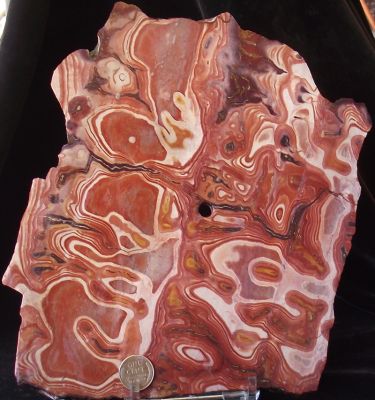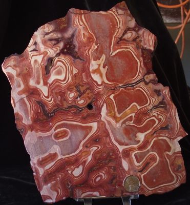 Wonderstone Slab with Clock Hole mount if one wants. Weighs about 1 lb 6.5 Oz and measures about 8" x 7" x .3021" Thick or 7.65 MM thick. Photographed wet and slabs are at an angle to stop some glare so slab in pictures look smaller.